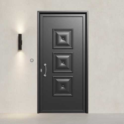 Θωρακισμένη Πόρτα Ασφαλείας Αλουμινίου - Πρεσαριστό Σχέδιο Λευκή