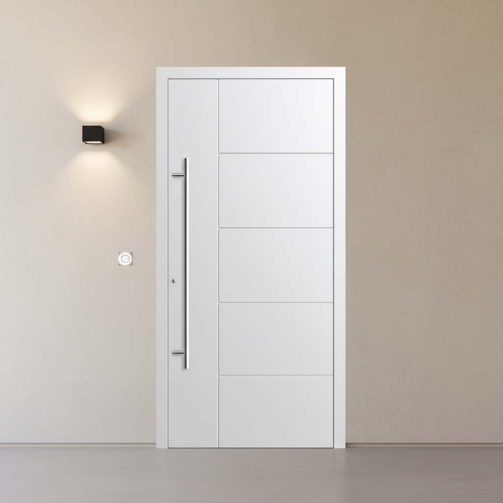 Θωρακισμένη Πόρτα Ασφαλείας Αλουμινίου – Πρεσαριστό Σχέδιο Λευκή