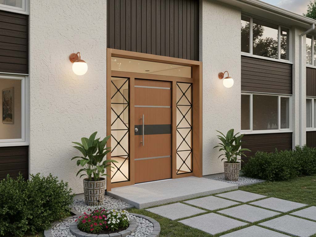 - Με Επένδυση Αλουμινίου Με σχέδιο Inox Εξωτερικά & Laminate Εσωτερικά Με Φάσα Inox